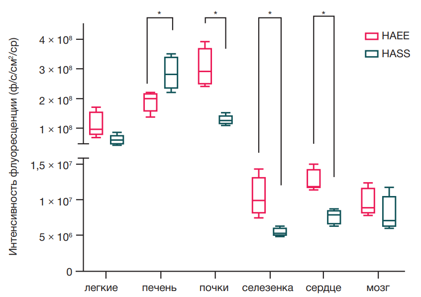 Сравнительная фармакокинетика и биораспределение пептидов HAEE и HASS