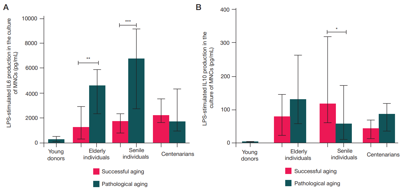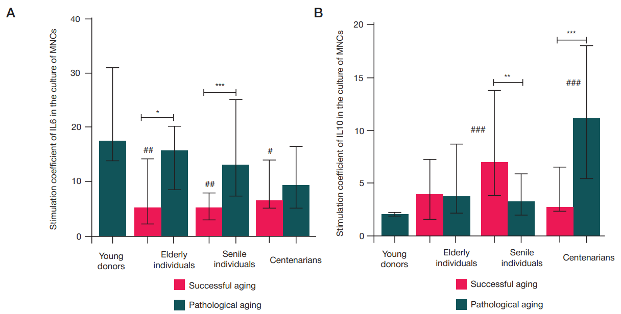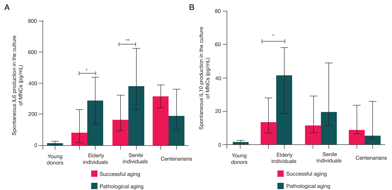 Determination of aging phenotype based on the changes in spontaneous and induced interleukin-6 and interleukin-10 production in vitro
