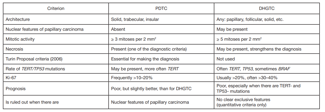 Table. Comparison of morphological, immunohistochemical, and molecular features of poorly differentiated (PDTC) and differentiated high-grade tyroid carcinoma (DHGTC)