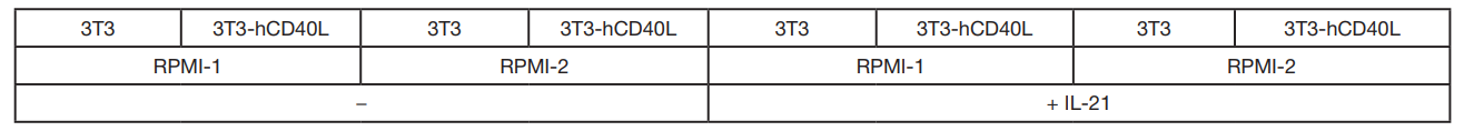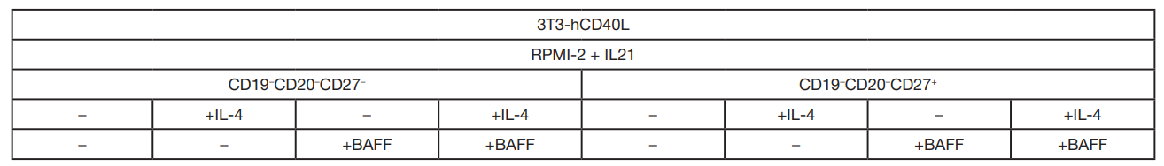 Table 2. Experimental design for studying cultures of CD20+CD27– naive B cells and CD20+CD27+ memory B cells
