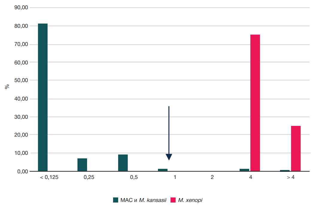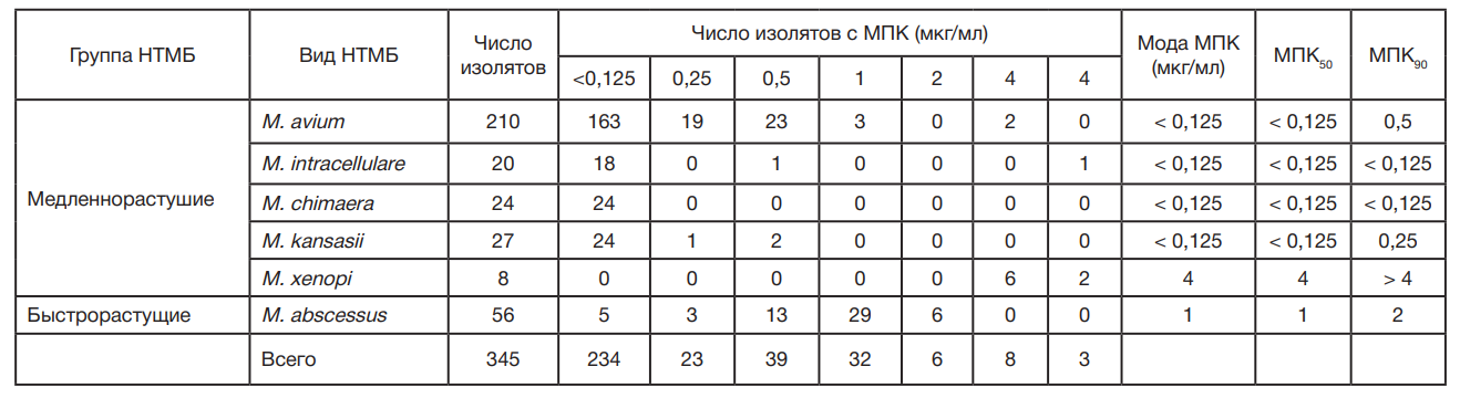 Чувствительность к бедаквилину нетуберкулезных микобактерий, циркулирующих на территории России
