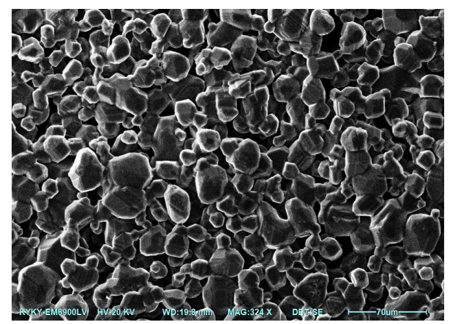 Рис. 2. Микроструктура поверхности B4C-керамики, изготовленной методом свободного спекания. Масштабная линейка — 70 мкм