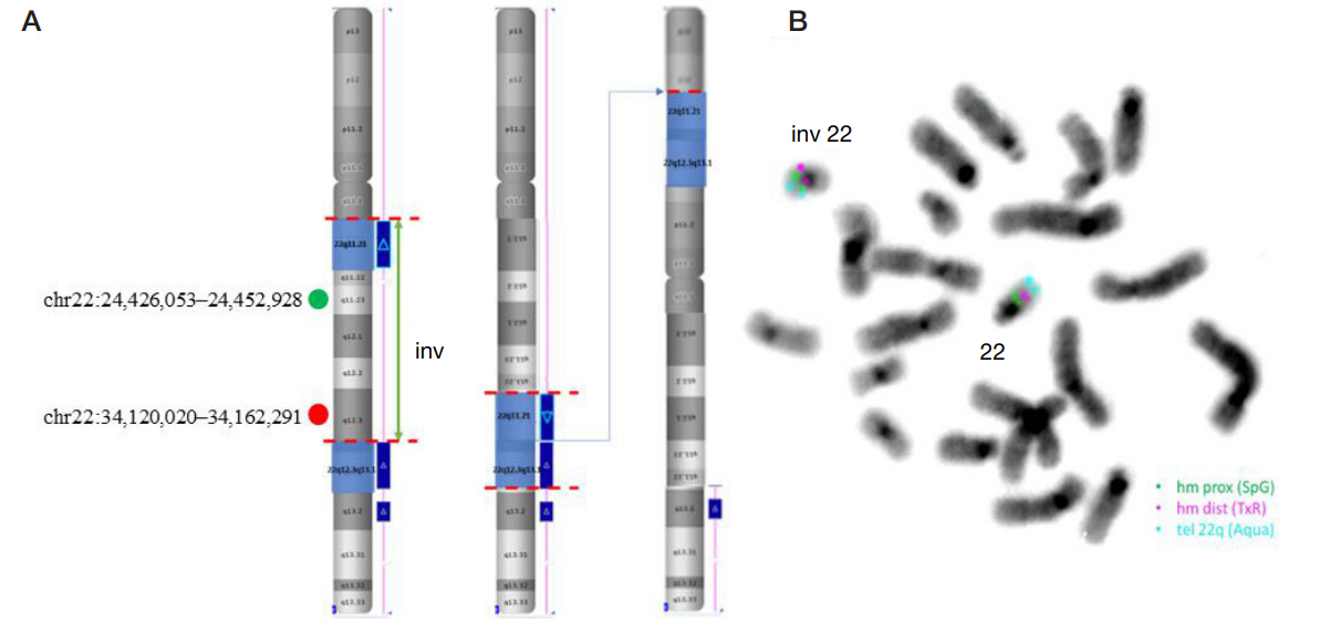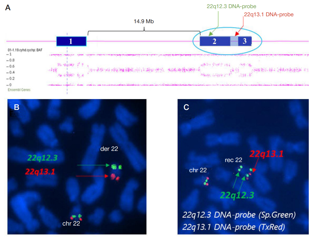 Molecular cytogenetic characterization of a rare recombinant chromosome 22 caused by a maternal intrachromosomal insertion