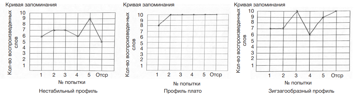 Рис. 2. Усредненные профили кривых запоминания 10 слов у ветеранов боевых действий