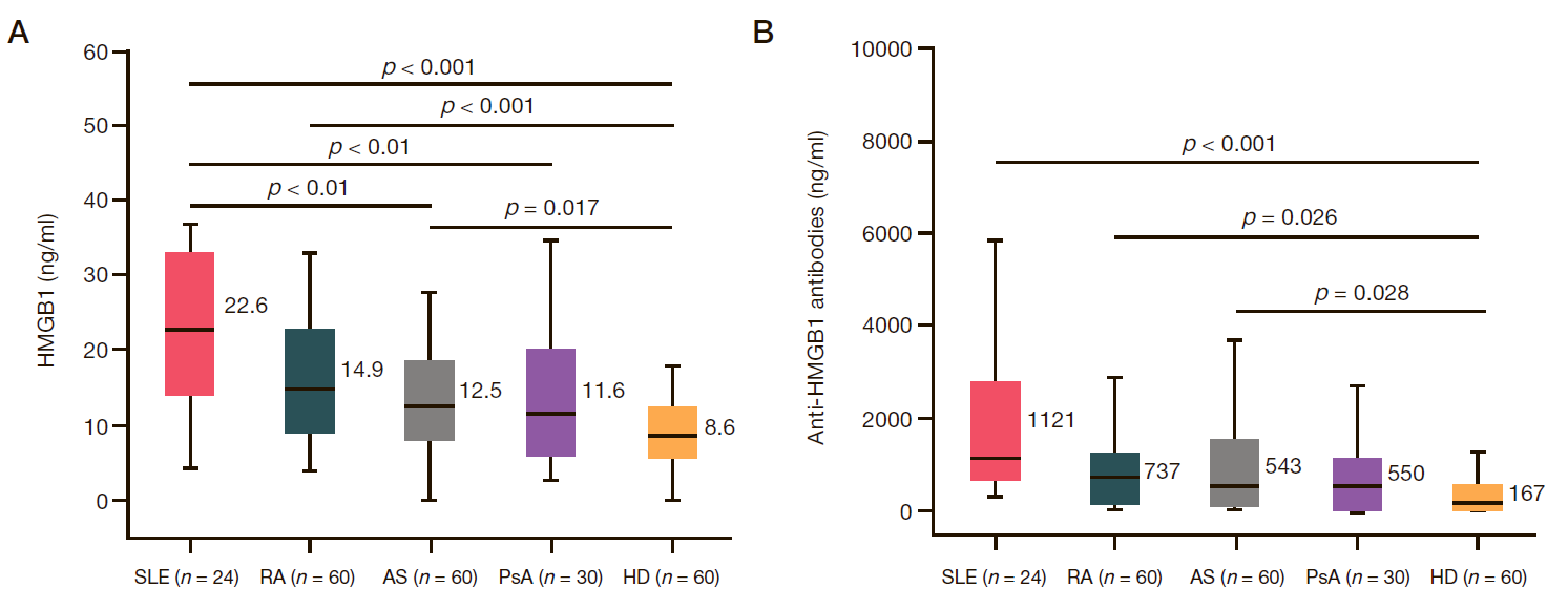 HMGB1 and anti-HMGB1 antibodies in systemic lupus erythematosus and other rheumatic diseases