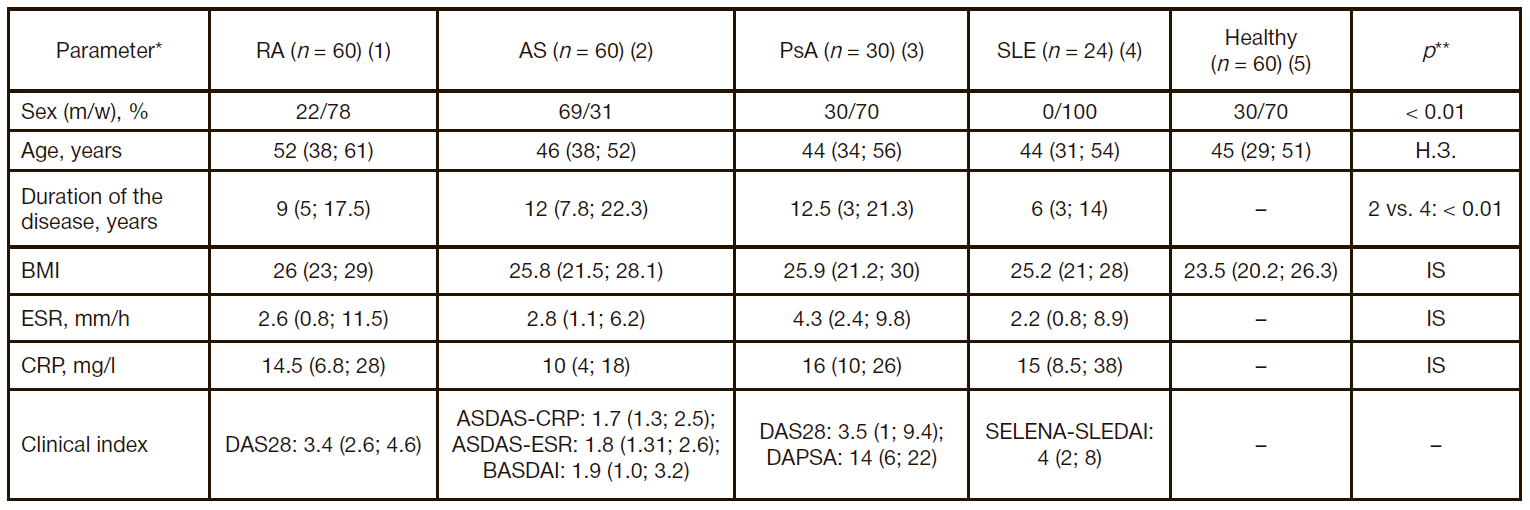Author contribution: Melamud MM — data analysis, manuscript writing; Ermakov EA — study design, manuscript writing and editing; Tolmacheva AS — experimental work, data analysis; Sizikov AE, Klyaus NA — material collection and preparation, data analysis; Nevinsky GA, Buneva VN — project supervision, editing. The contributions of Melamud MM and Ermakov EA were equal.