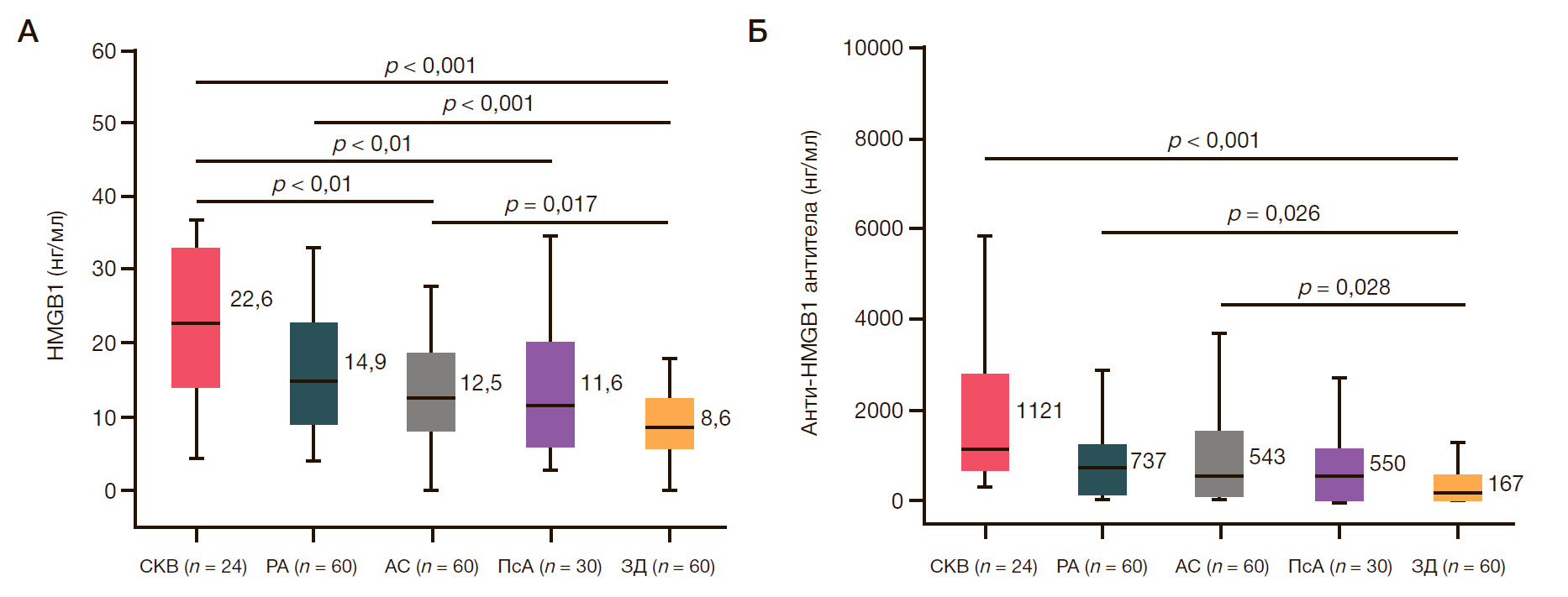 HMGB1 и анти-HMGB1 антитела при системной красной волчанке и других ревматических заболеваниях