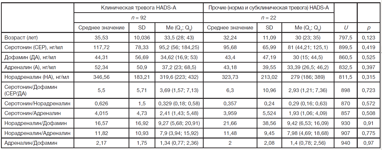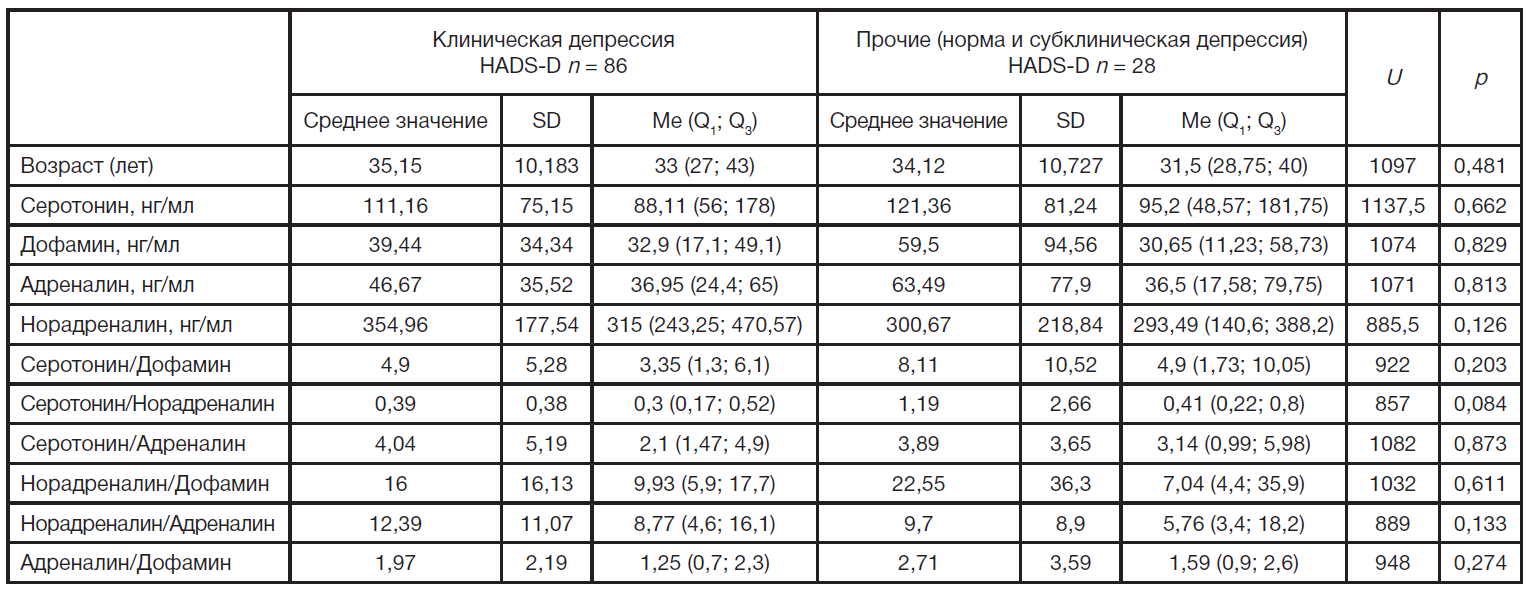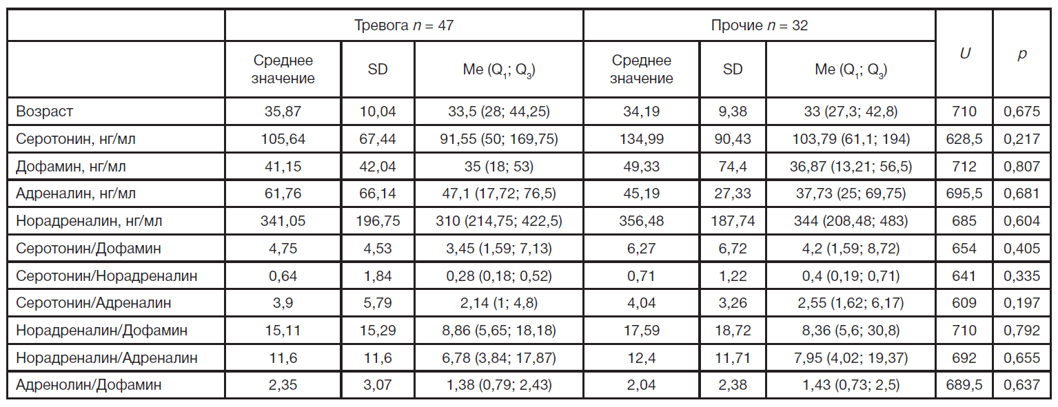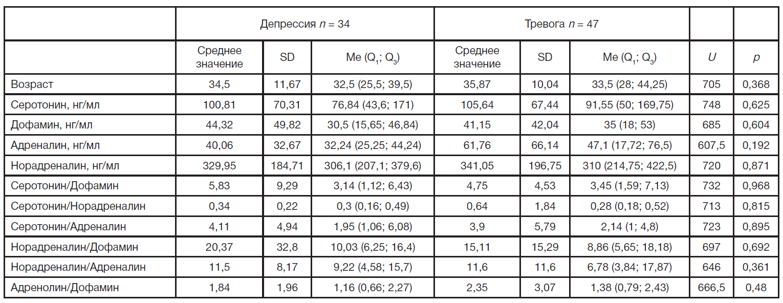 Оценка уровня катехоламинов и серотонина в крови при тревожно-депрессивных расстройствах