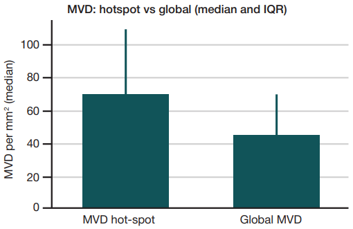 Fig. 2. Microvascular density (MVD, CD31): comparison of Weidner hotspots and whole-section assessment