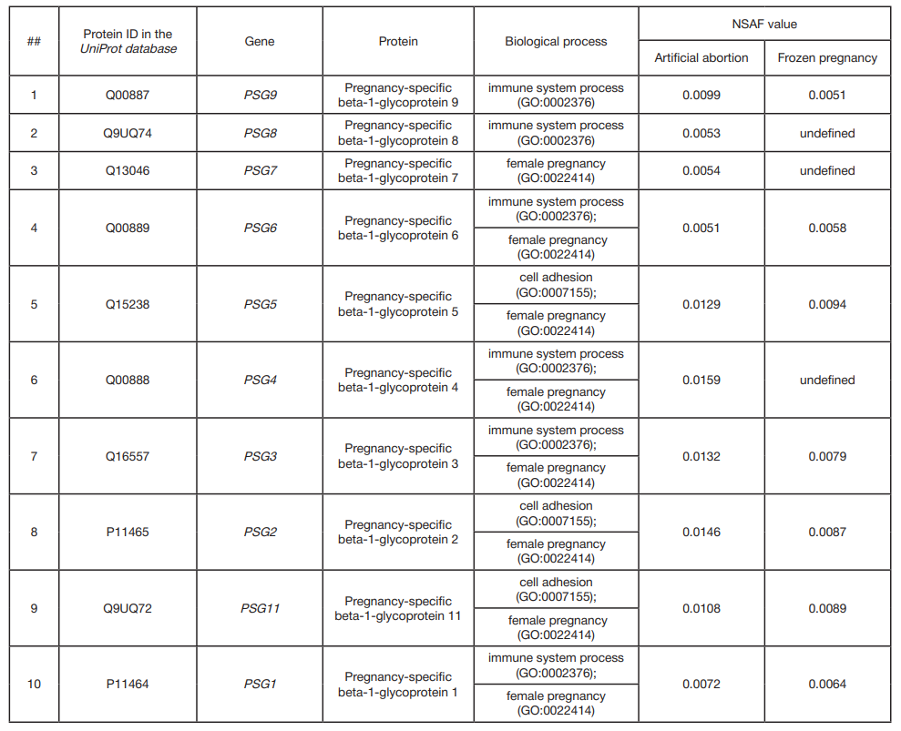 Table 1. Pregnancy-specific glycoproteins (PSG) detected in human chorionic villi by panoramic mass spectrometry (LC-MS/MS)