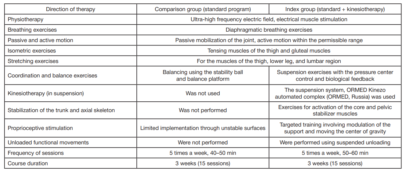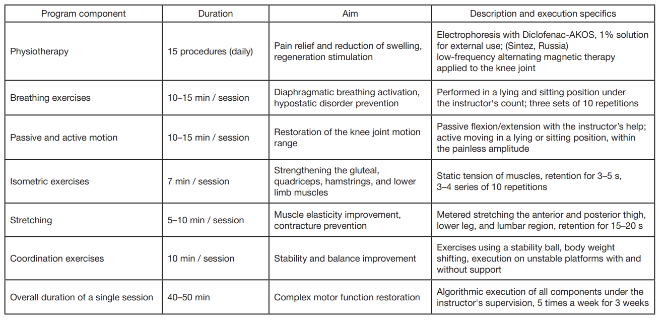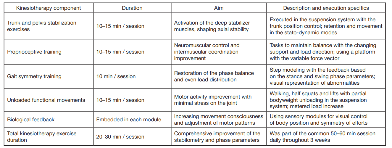 Table 3. Composition and structure of the rehabilitation program comprising the kinesiotherapy component used in the study group