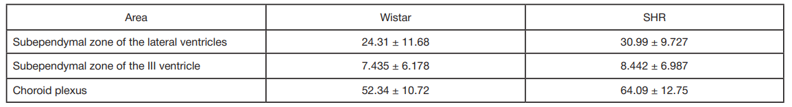 Table 2. Percentage of Iba-1+/CD68+ cells in various brain areas of Wistar rats and SHR. The data are provided as the mean ± standard deviation