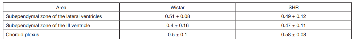 Table 3. Pearson’s correlation coefficient in various brain areas of Wistar and SHR rats. The data are provided as the mean ± standard deviation